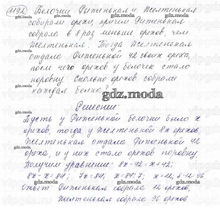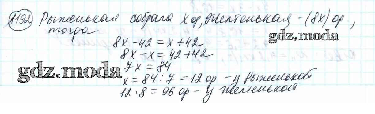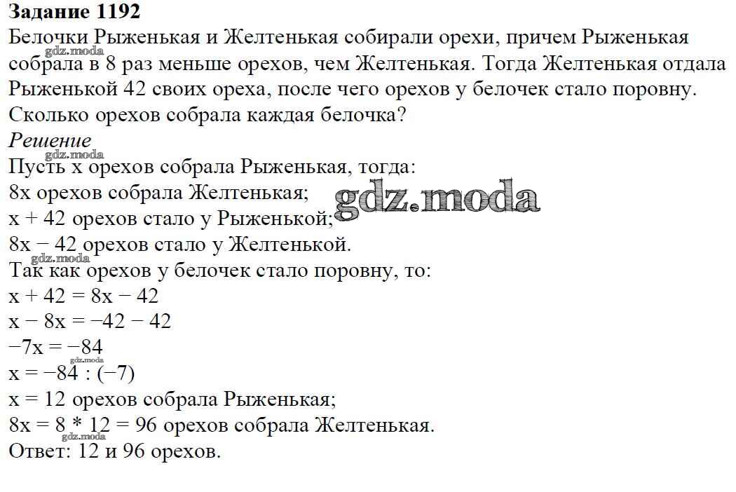 ОТВЕТ на задание № 1192 Учебник по Математике 6 класс Мерзляк Алгоритм успеха