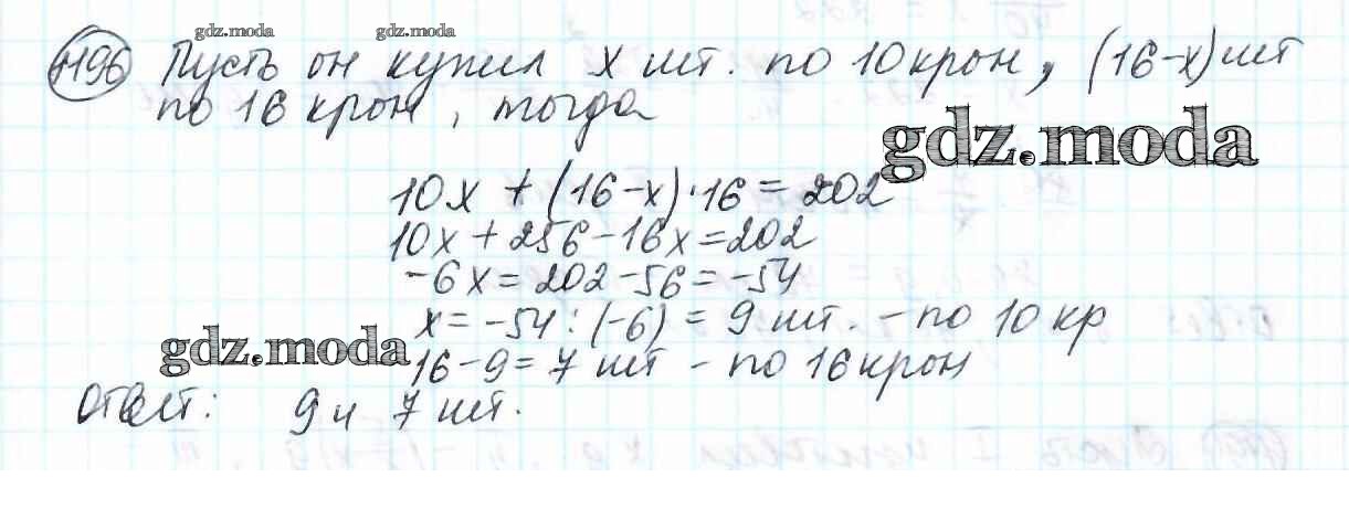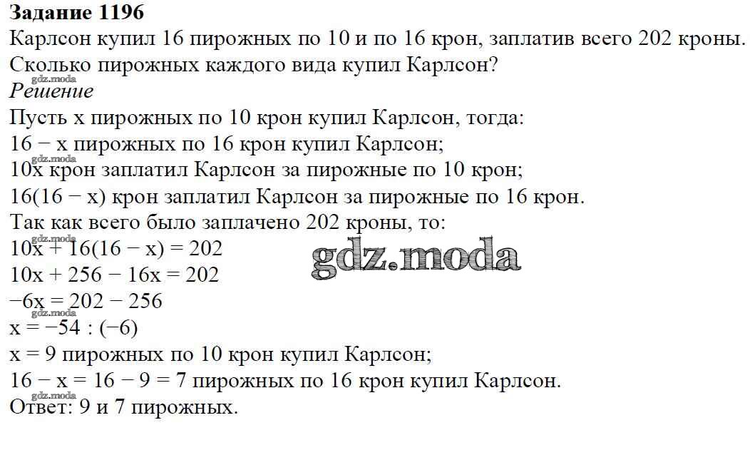 ОТВЕТ на задание № 1196 Учебник по Математике 6 класс Мерзляк Алгоритм успеха