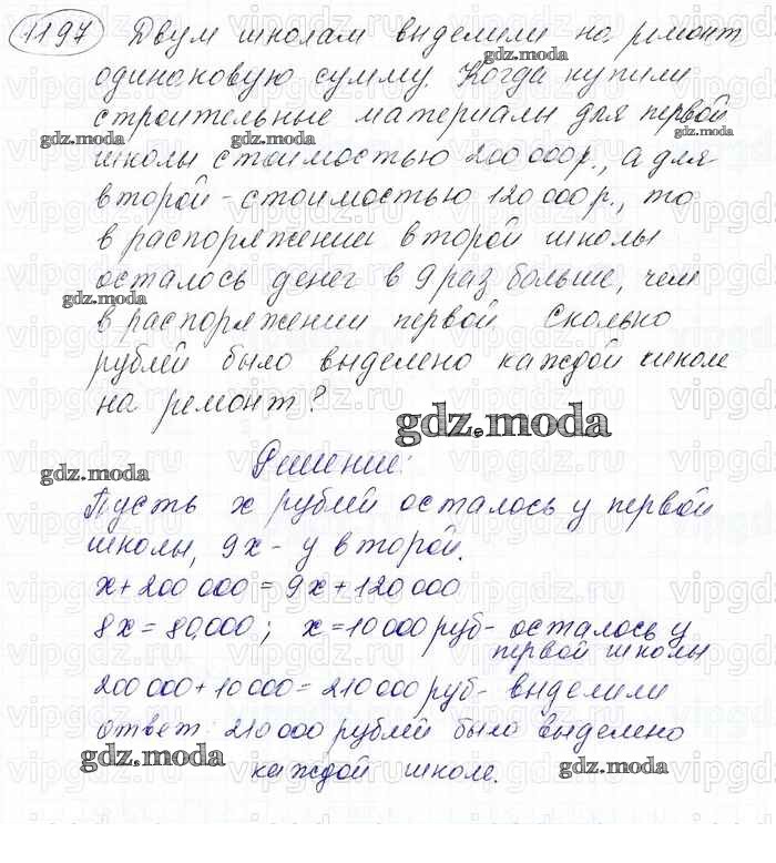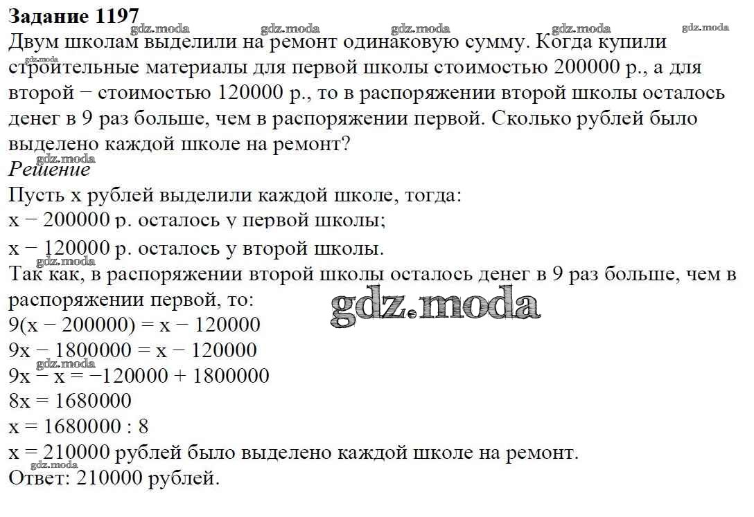 ОТВЕТ на задание № 1197 Учебник по Математике 6 класс Мерзляк Алгоритм успеха