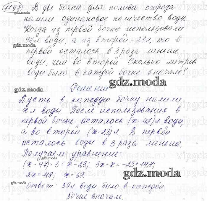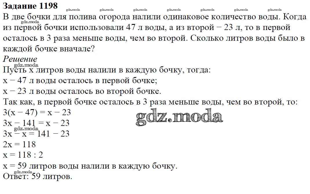 ОТВЕТ на задание № 1198 Учебник по Математике 6 класс Мерзляк Алгоритм успеха