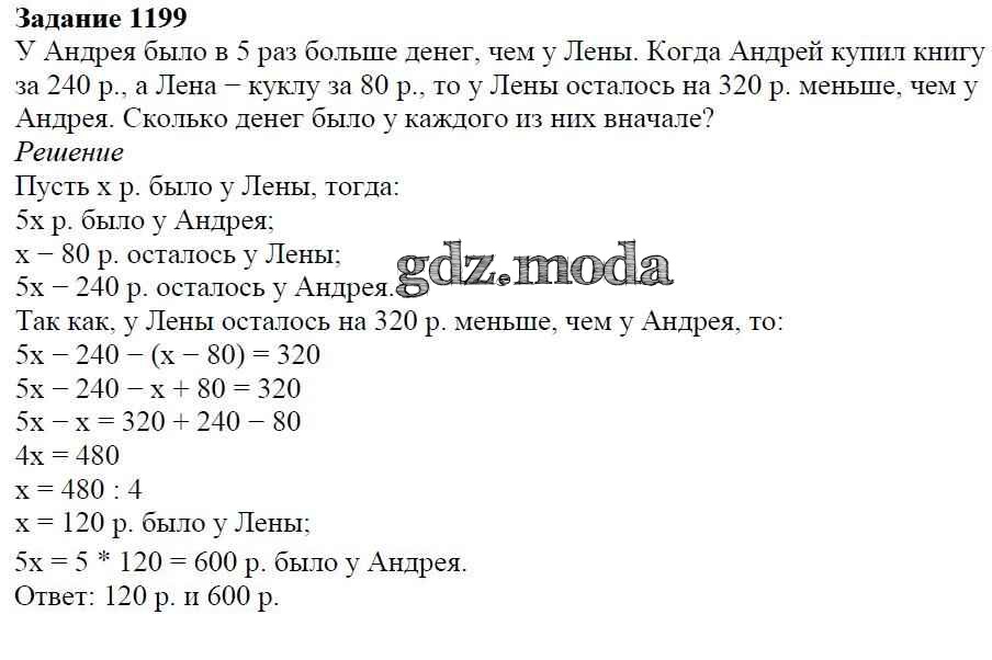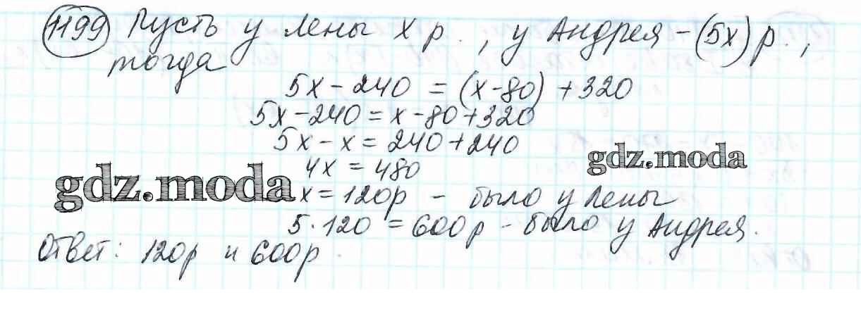 ОТВЕТ на задание № 1199 Учебник по Математике 6 класс Мерзляк Алгоритм успеха