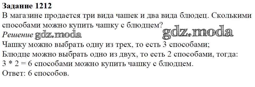 ОТВЕТ на задание № 1212 Учебник по Математике 6 класс Мерзляк Алгоритм успеха