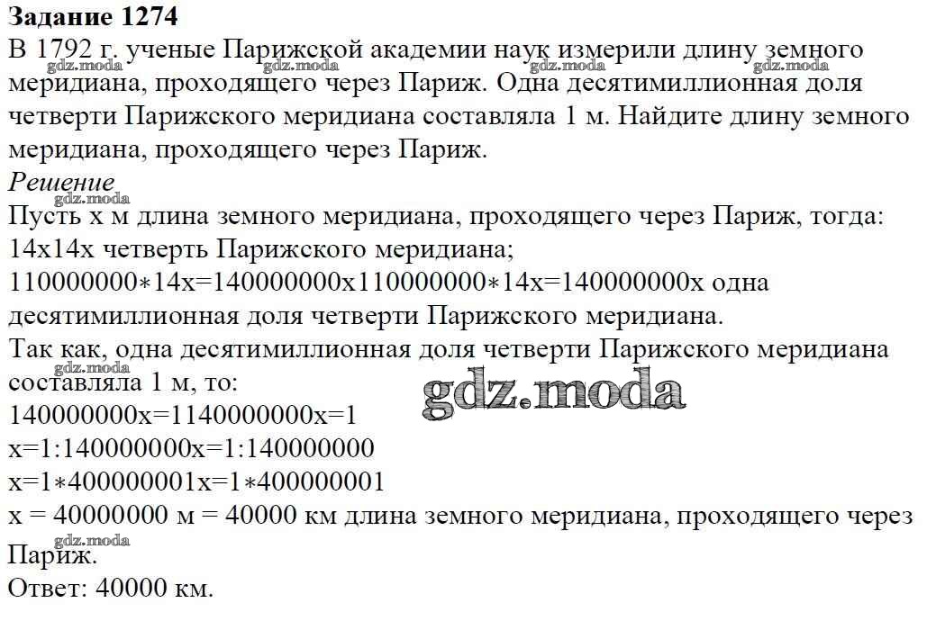 ОТВЕТ на задание № 1274 Учебник по Математике 6 класс Мерзляк Алгоритм успеха