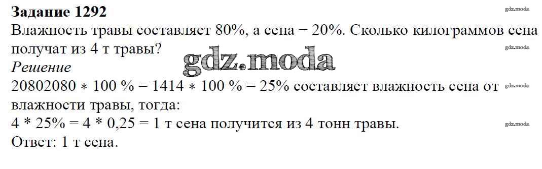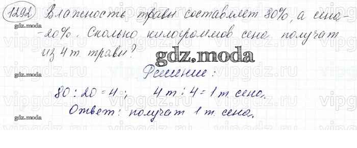 ОТВЕТ на задание № 1292 Учебник по Математике 6 класс Мерзляк Алгоритм успеха