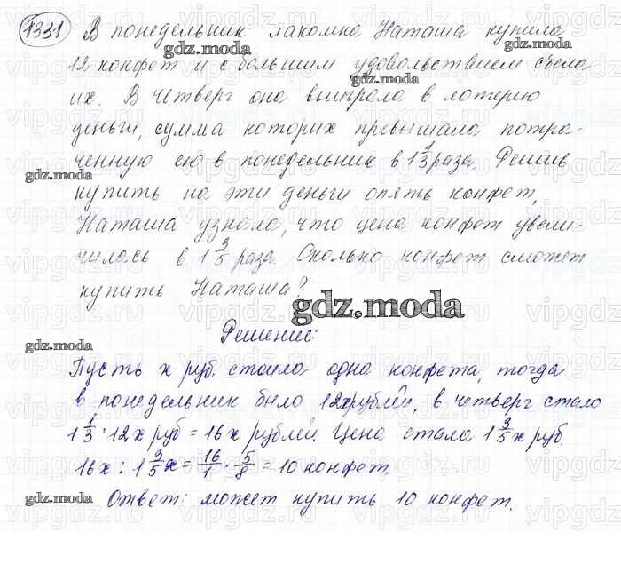 ОТВЕТ на задание № 1331 Учебник по Математике 6 класс Мерзляк Алгоритм успеха