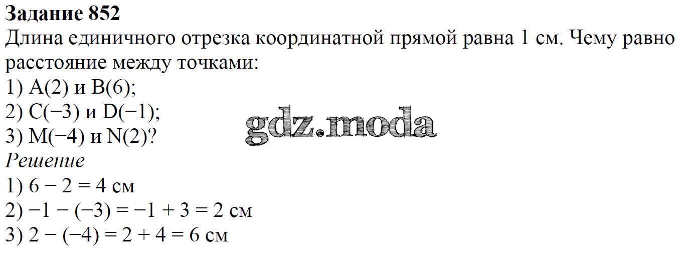 ОТВЕТ на задание № 852 Учебник по Математике 6 класс Мерзляк Алгоритм успеха