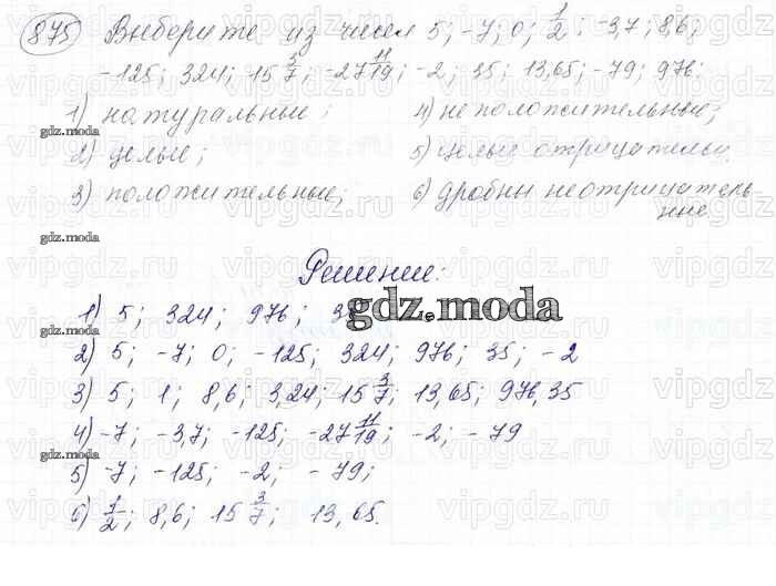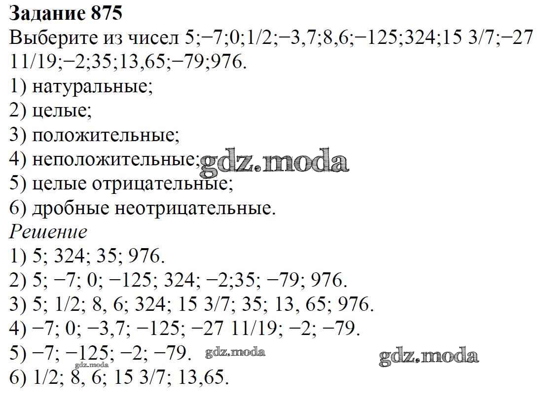 ОТВЕТ на задание № 875 Учебник по Математике 6 класс Мерзляк Алгоритм успеха