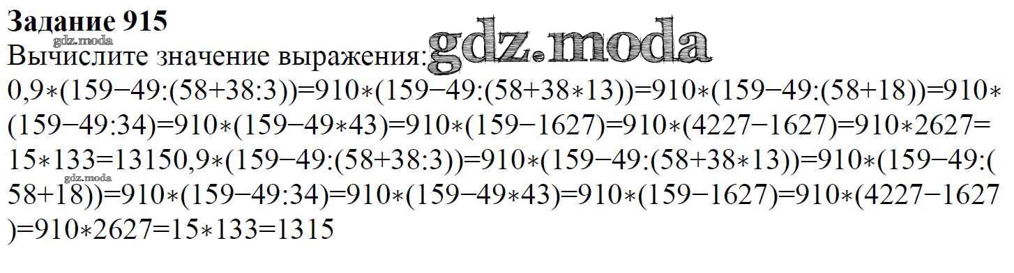 ОТВЕТ на задание № 915 Учебник по Математике 6 класс Мерзляк Алгоритм успеха