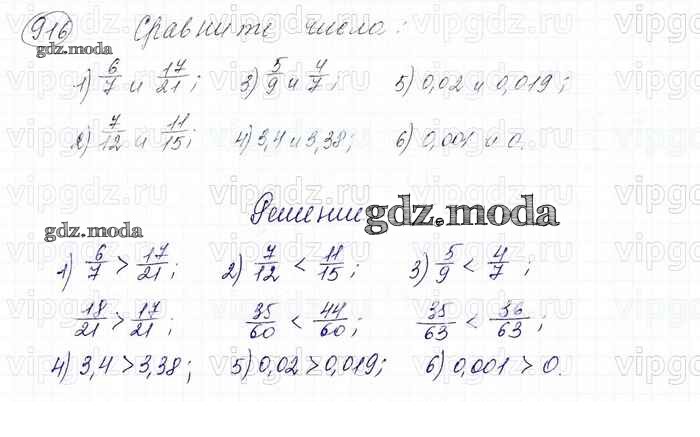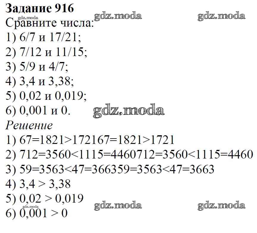 ОТВЕТ на задание № 916 Учебник по Математике 6 класс Мерзляк Алгоритм успеха