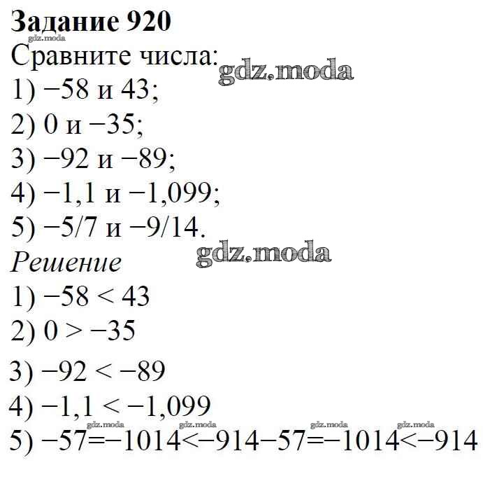 ОТВЕТ на задание № 920 Учебник по Математике 6 класс Мерзляк Алгоритм успеха