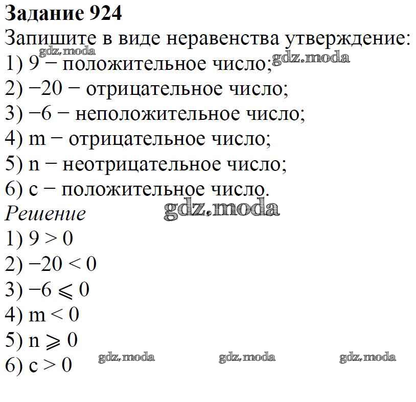 ОТВЕТ на задание № 924 Учебник по Математике 6 класс Мерзляк Алгоритм успеха