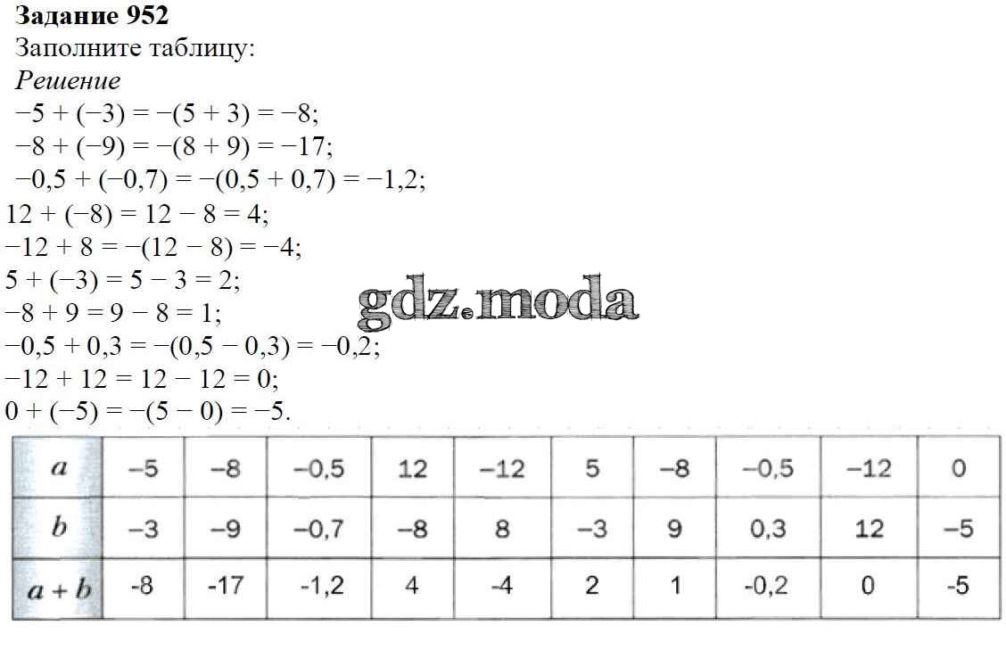 ОТВЕТ на задание № 952 Учебник по Математике 6 класс Мерзляк Алгоритм успеха