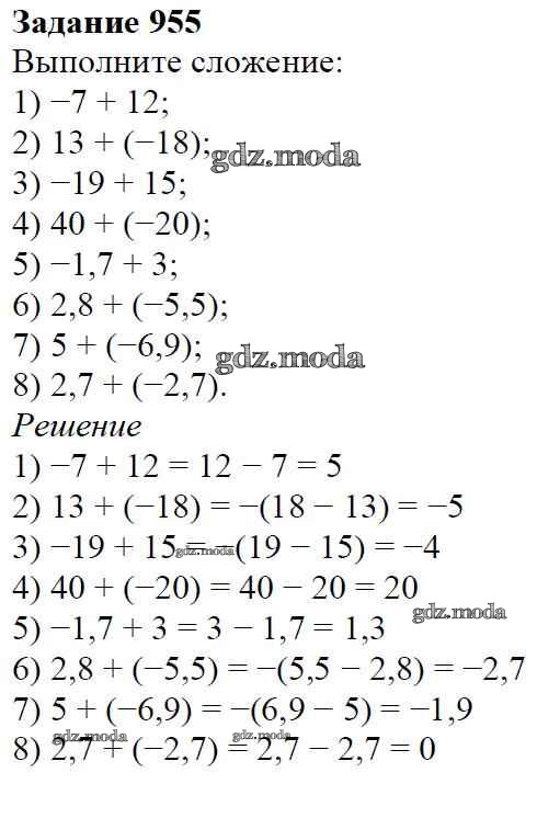 ОТВЕТ на задание № 955 Учебник по Математике 6 класс Мерзляк Алгоритм успеха