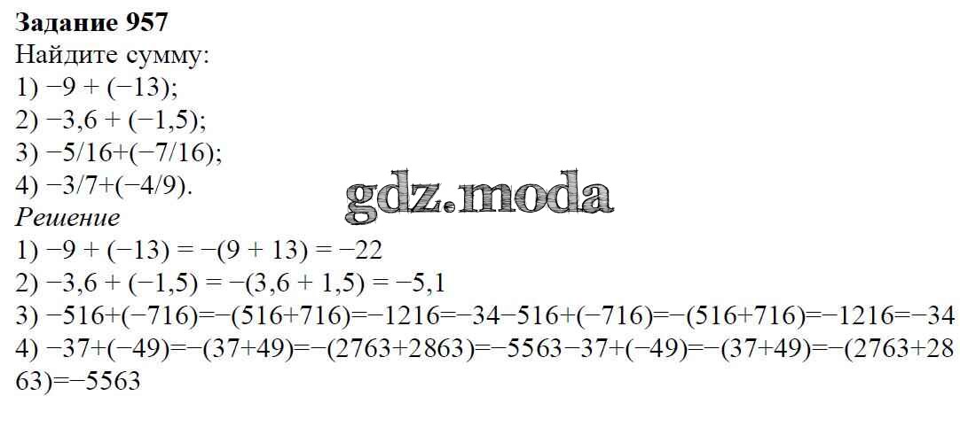 ОТВЕТ на задание № 957 Учебник по Математике 6 класс Мерзляк Алгоритм успеха