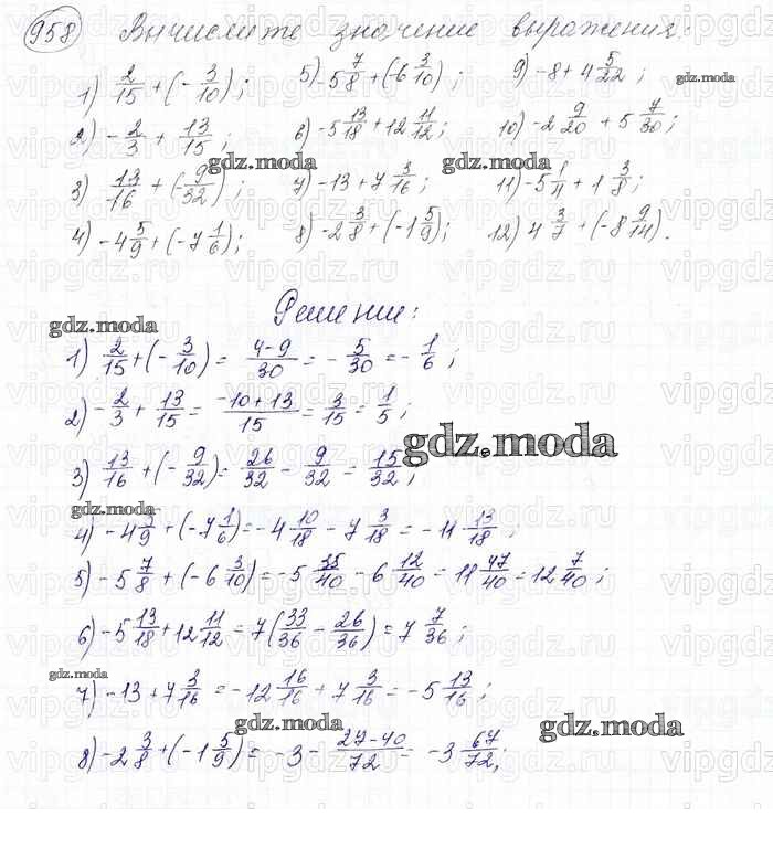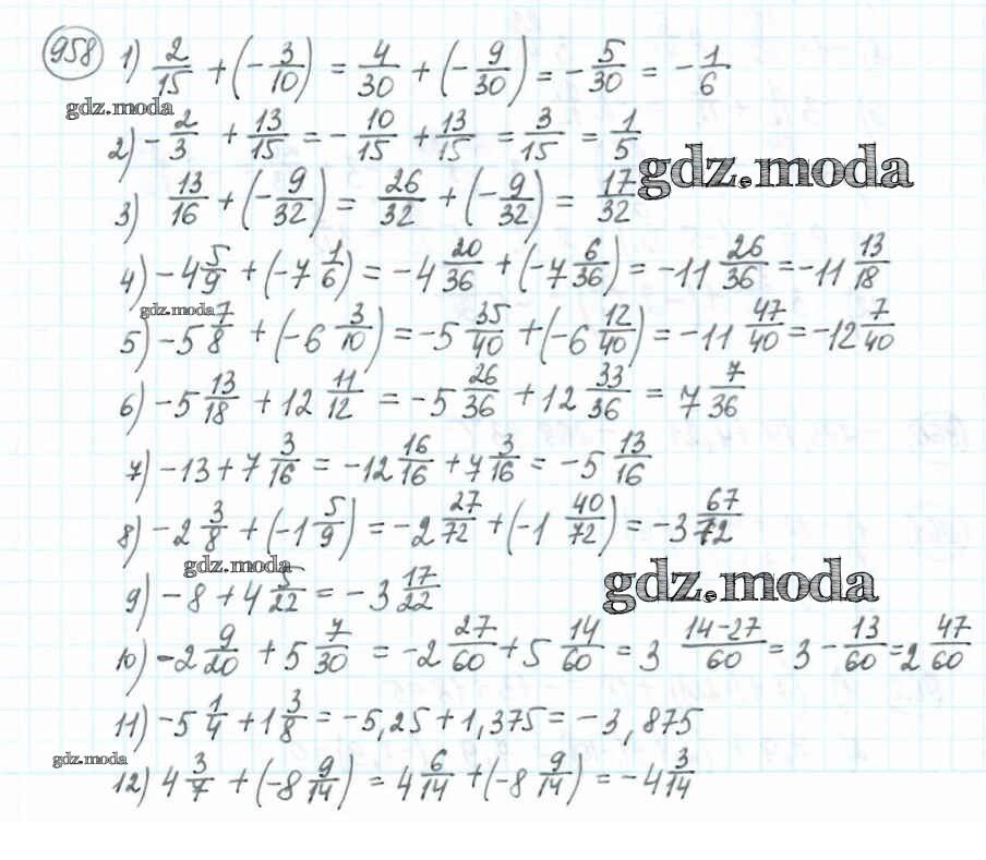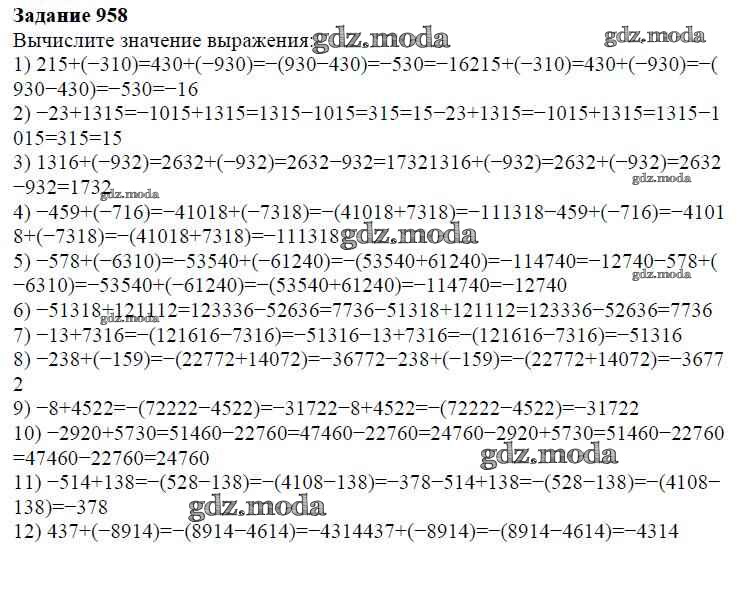 ОТВЕТ на задание № 958 Учебник по Математике 6 класс Мерзляк Алгоритм успеха