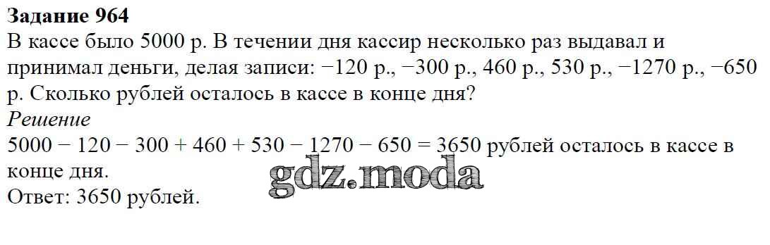 ОТВЕТ на задание № 964 Учебник по Математике 6 класс Мерзляк Алгоритм успеха