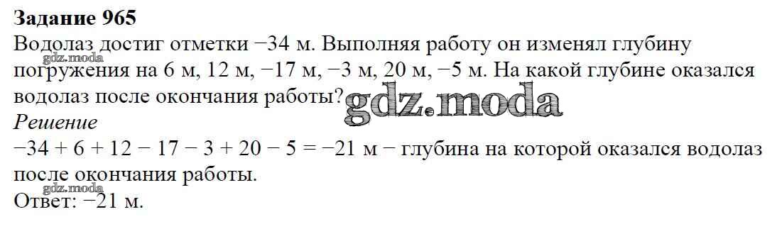 ОТВЕТ на задание № 965 Учебник по Математике 6 класс Мерзляк Алгоритм успеха