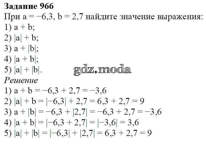 ОТВЕТ на задание № 966 Учебник по Математике 6 класс Мерзляк Алгоритм успеха