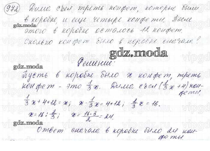 ОТВЕТ на задание № 972 Учебник по Математике 6 класс Мерзляк Алгоритм успеха
