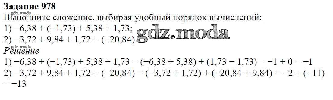 ОТВЕТ на задание № 978 Учебник по Математике 6 класс Мерзляк Алгоритм успеха