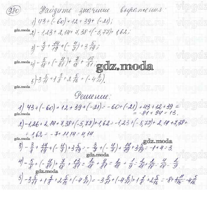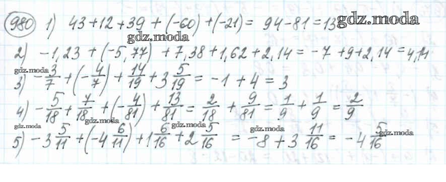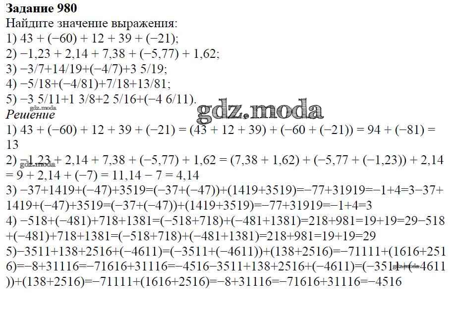 ОТВЕТ на задание № 980 Учебник по Математике 6 класс Мерзляк Алгоритм успеха
