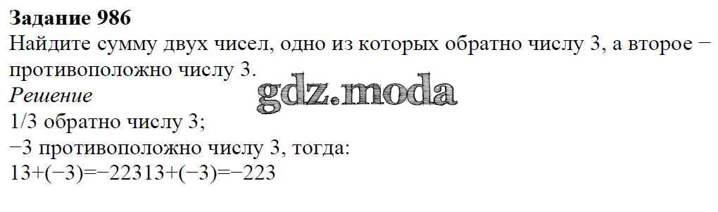 ОТВЕТ на задание № 986 Учебник по Математике 6 класс Мерзляк Алгоритм успеха