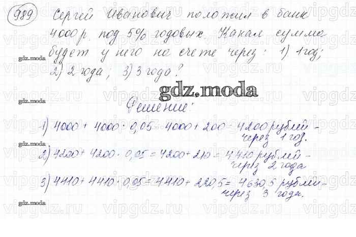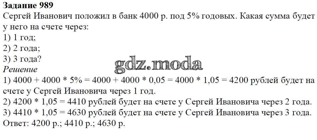 ОТВЕТ на задание № 989 Учебник по Математике 6 класс Мерзляк Алгоритм успеха