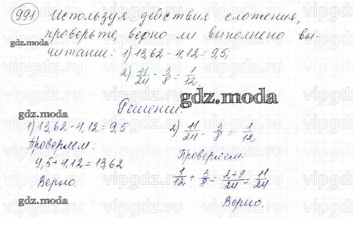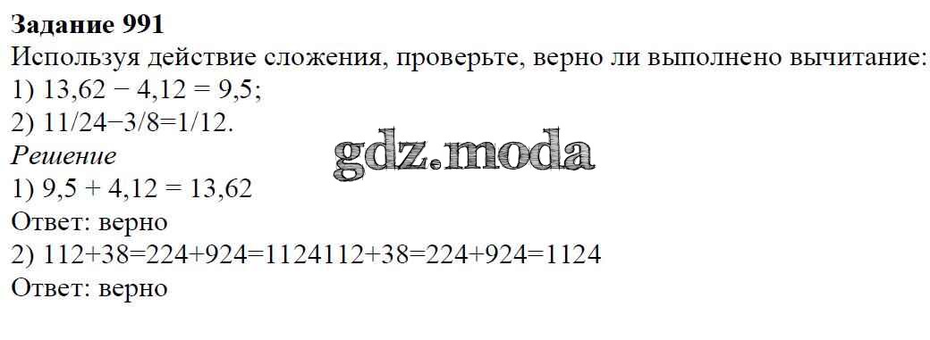 ОТВЕТ на задание № 991 Учебник по Математике 6 класс Мерзляк Алгоритм успеха