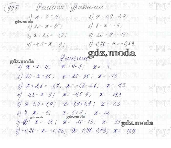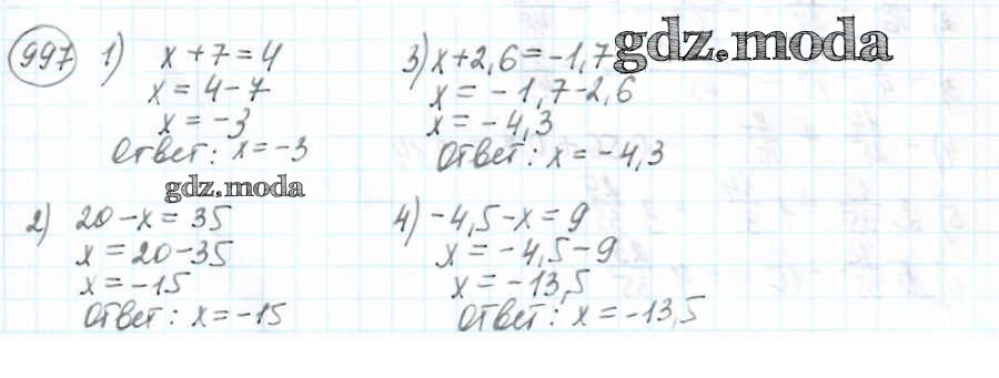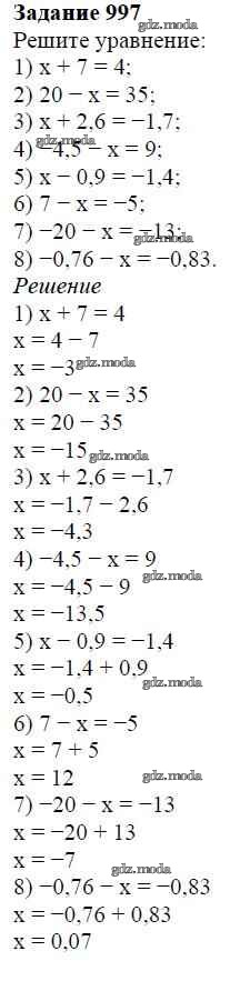 ОТВЕТ на задание № 997 Учебник по Математике 6 класс Мерзляк Алгоритм успеха