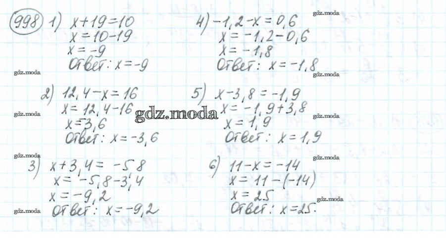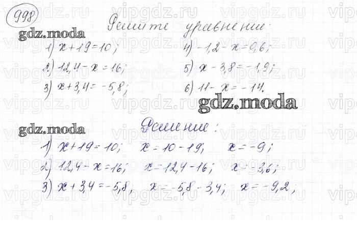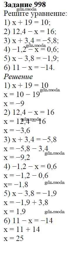 ОТВЕТ на задание № 998 Учебник по Математике 6 класс Мерзляк Алгоритм успеха