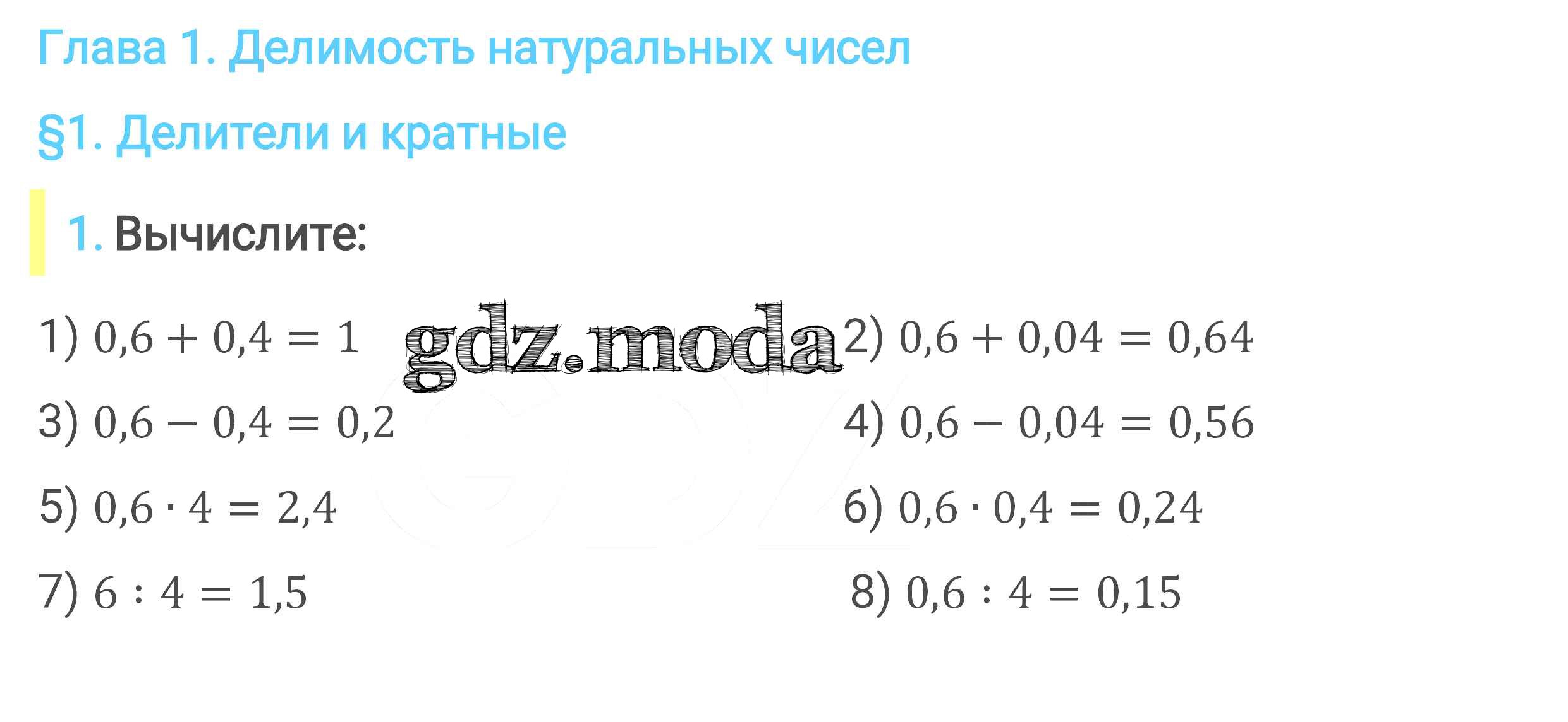 ОТВЕТ на задание № 1 Учебник по Математике 6 класс Мерзляк Алгоритм успеха