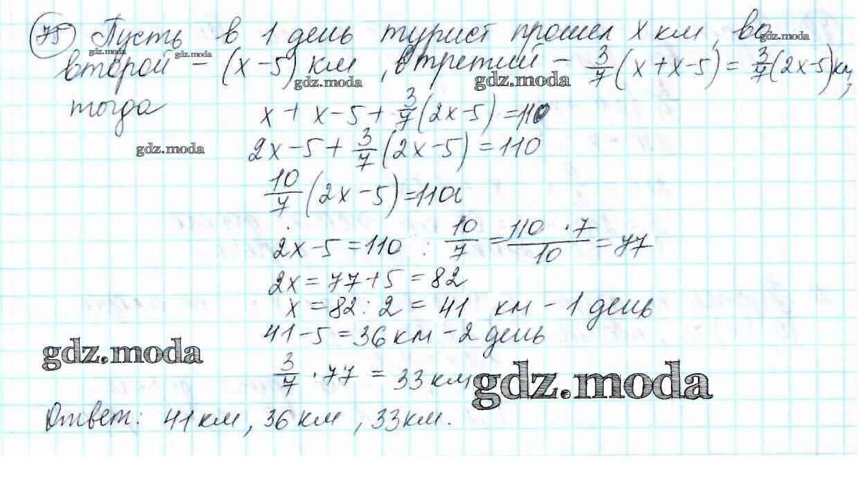 ОТВЕТ на задание № 75 Учебник по Математике 6 класс Мерзляк Алгоритм успеха