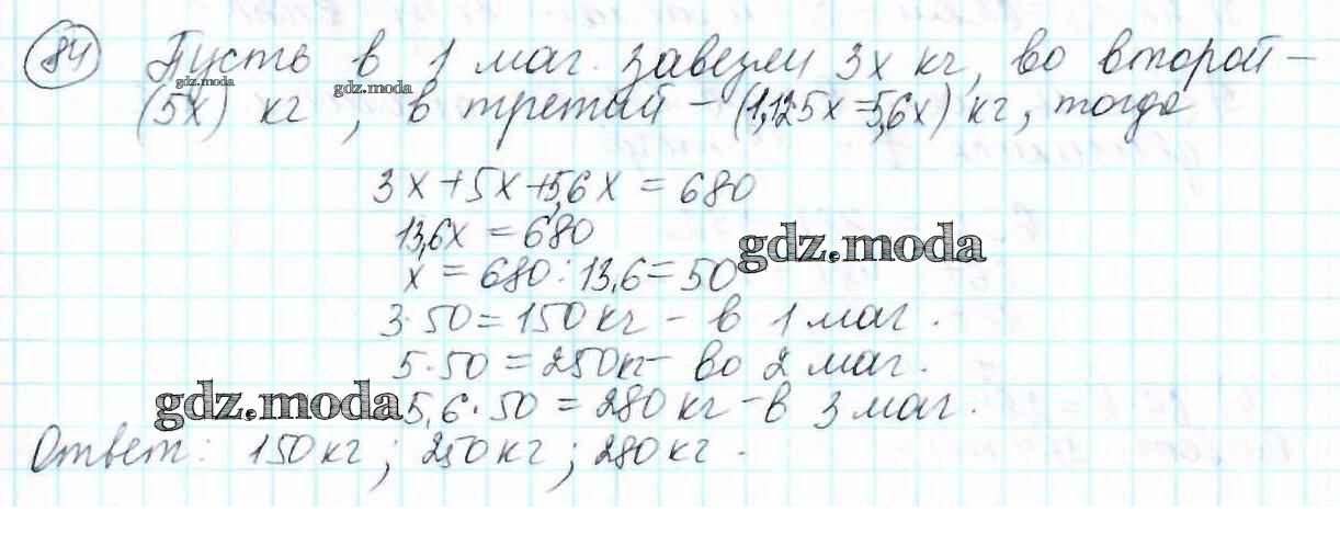 ОТВЕТ на задание № 84 Учебник по Математике 6 класс Мерзляк Алгоритм успеха