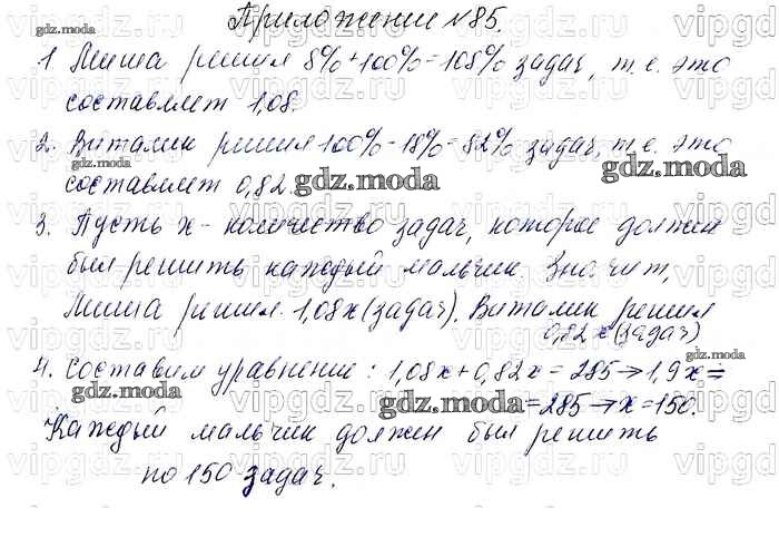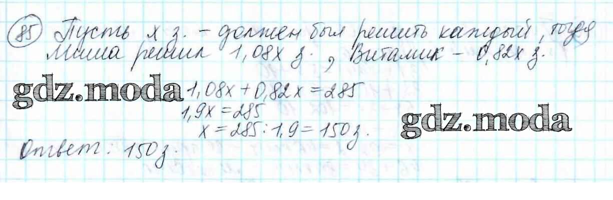 ОТВЕТ на задание № 85 Учебник по Математике 6 класс Мерзляк Алгоритм успеха