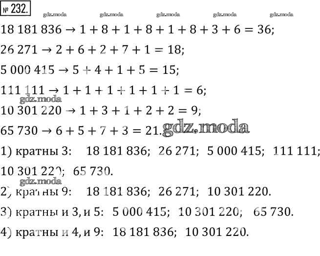 ОТВЕТ на задание № 232 Учебник по Математике 6 класс Муравин Вертикаль