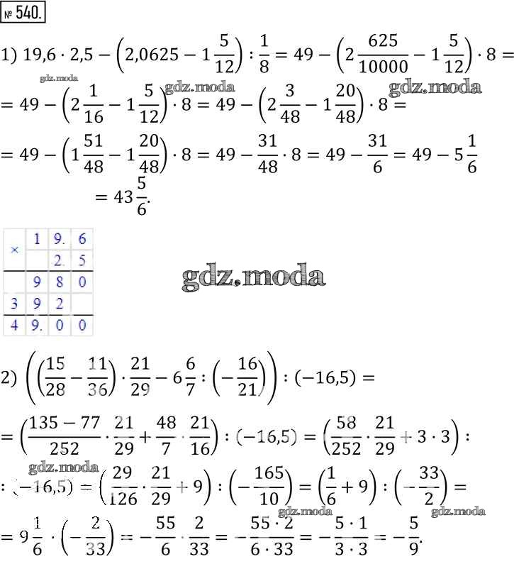 ОТВЕТ на задание № 540 Учебник по Математике 6 класс Муравин Вертикаль