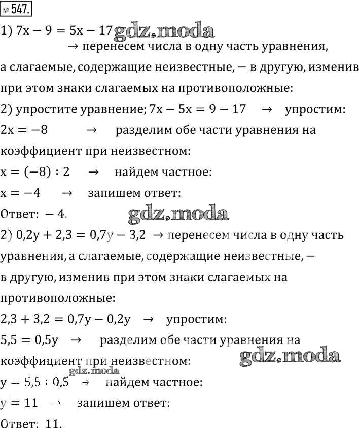 ОТВЕТ на задание № 547 Учебник по Математике 6 класс Муравин Вертикаль