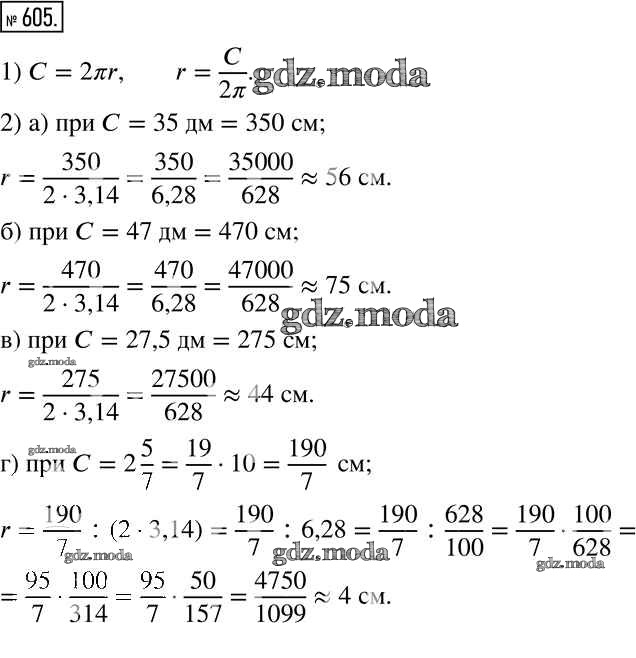 ОТВЕТ на задание № 605 Учебник по Математике 6 класс Муравин Вертикаль
