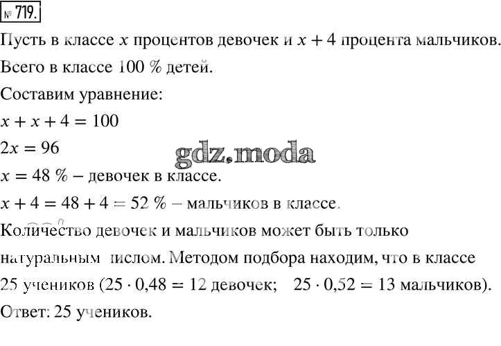 ГДЗ решение к заданию № 719 Математика 6 класс Муравин Г.К. Дрофа 2016 ФГОС бесплатно на гдз.мода!