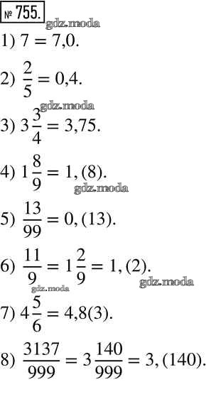 ОТВЕТ на задание № 755 Учебник по Математике 6 класс Муравин Вертикаль