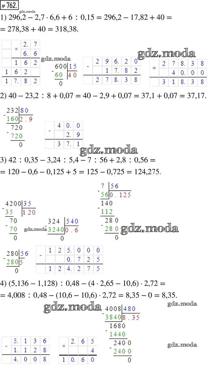 ОТВЕТ на задание № 762 Учебник по Математике 6 класс Муравин Вертикаль