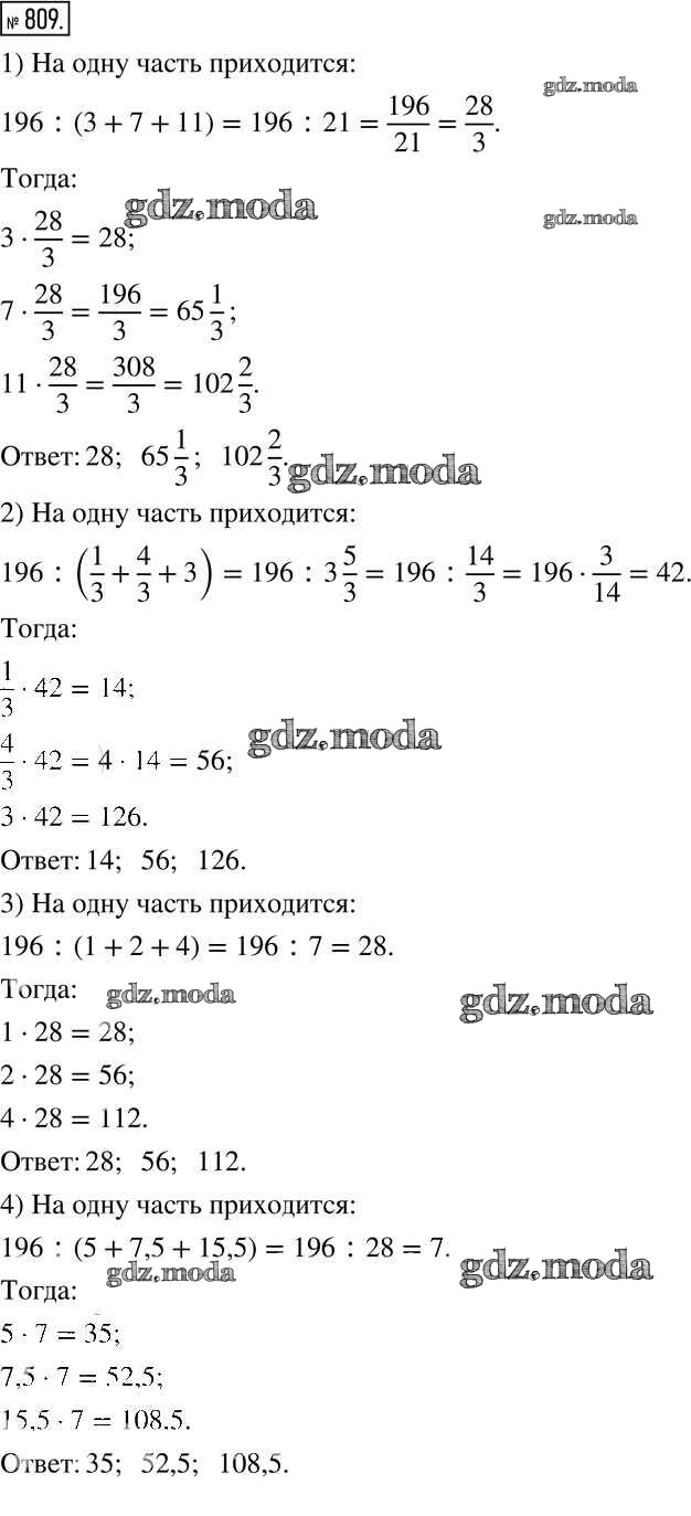 ОТВЕТ на задание № 809 Учебник по Математике 6 класс Муравин Вертикаль