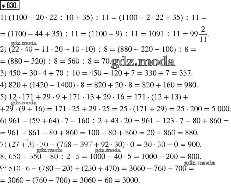 ОТВЕТ на задание № 830 Учебник по Математике 6 класс Муравин Вертикаль