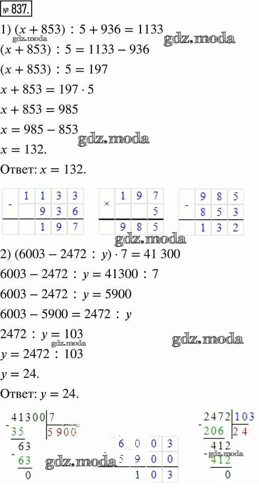 ОТВЕТ на задание № 837 Учебник по Математике 6 класс Муравин Вертикаль