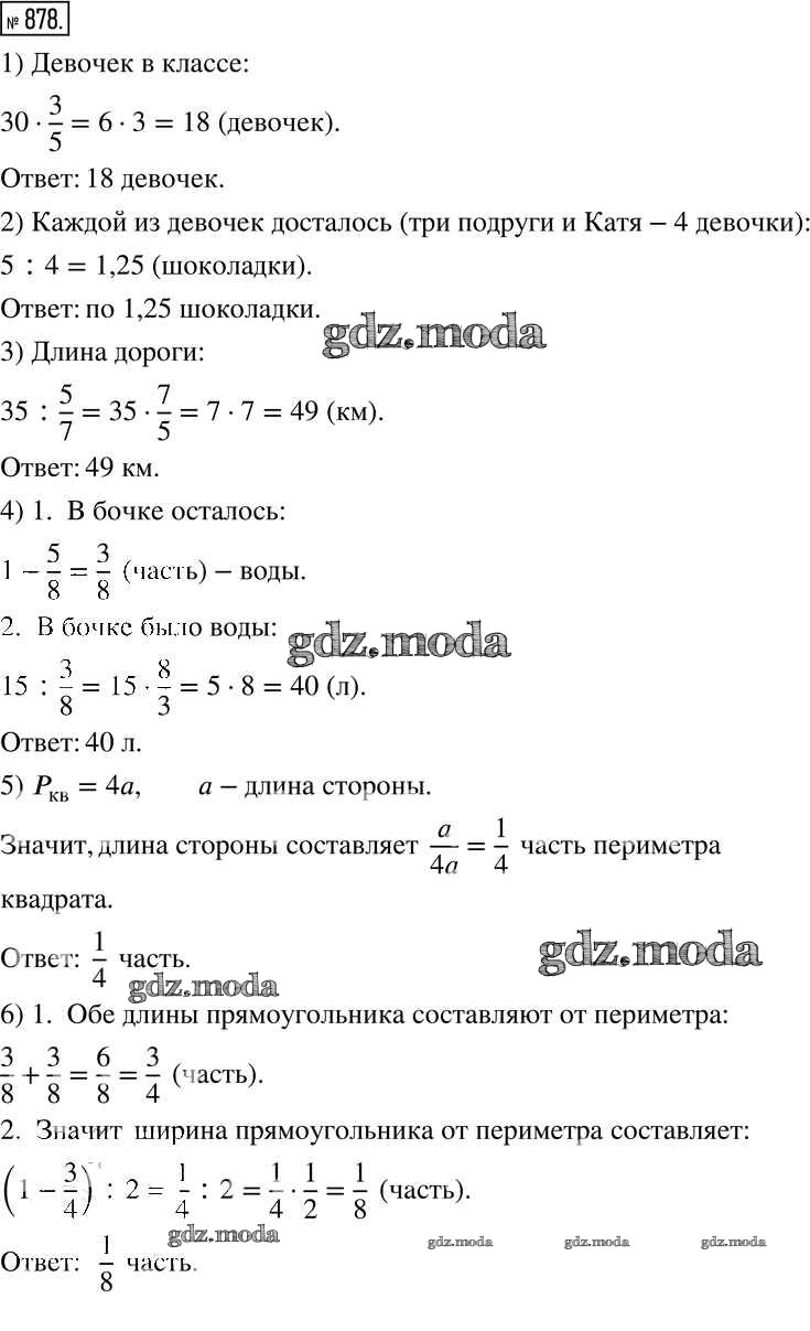 ОТВЕТ на задание № 878 Учебник по Математике 6 класс Муравин Вертикаль