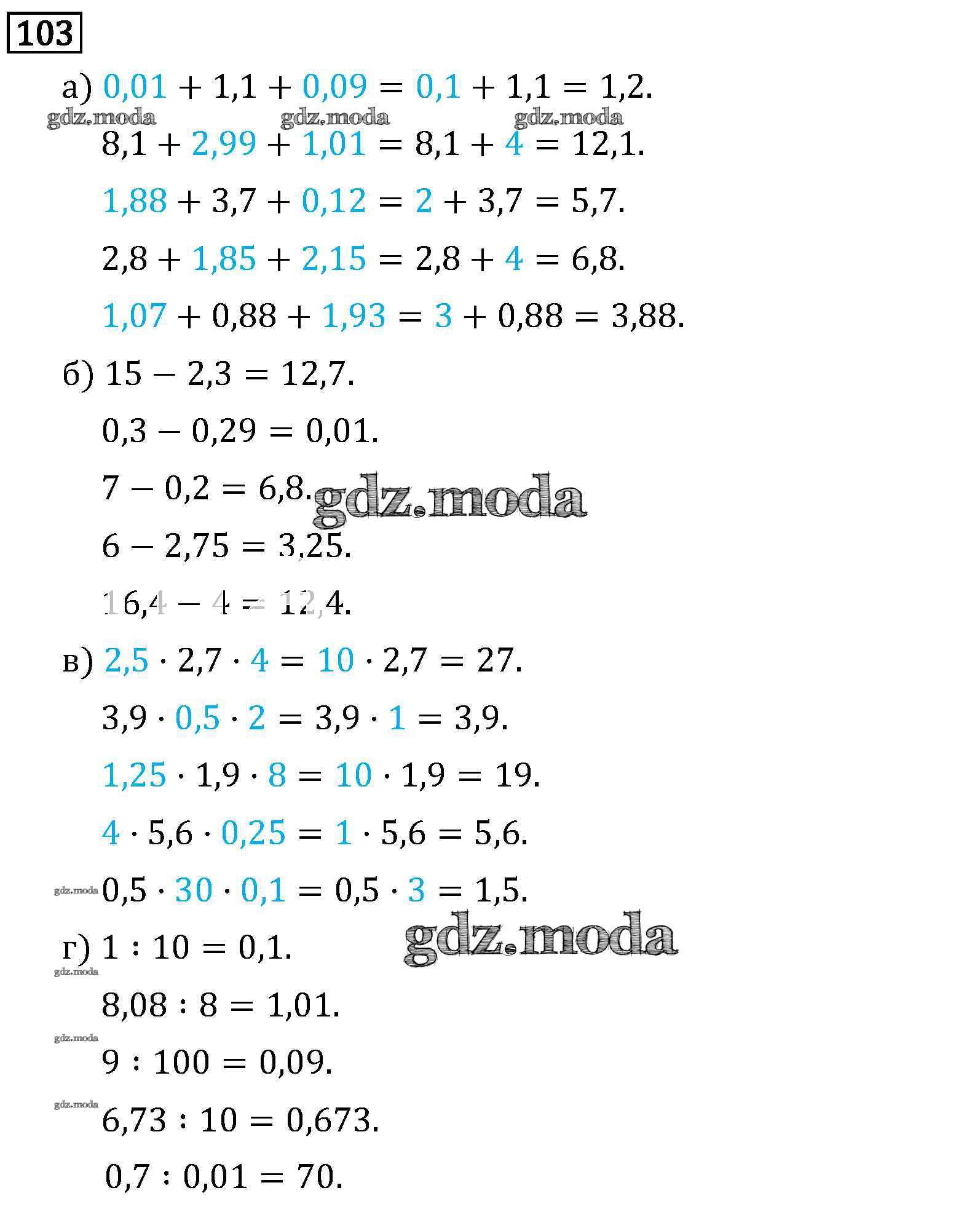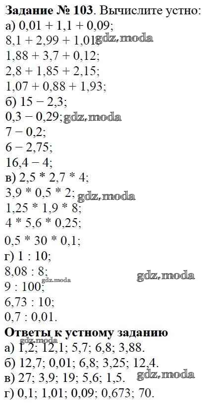 ОТВЕТ на задание № 103 Учебник по Математике 6 класс Виленкин
