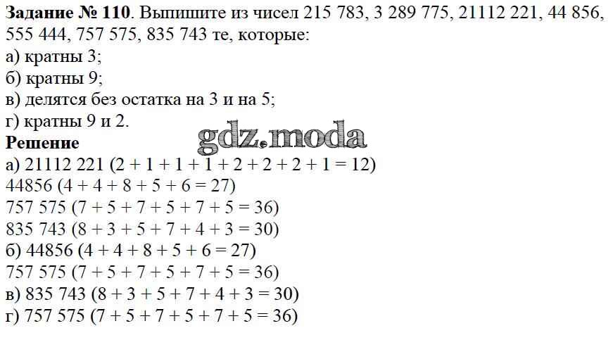 ОТВЕТ на задание № 110 Учебник по Математике 6 класс Виленкин