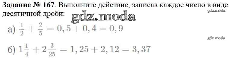 ОТВЕТ на задание № 167 Учебник по Математике 6 класс Виленкин