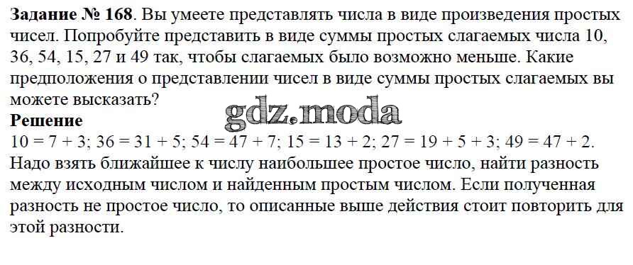 ОТВЕТ на задание № 168 Учебник по Математике 6 класс Виленкин