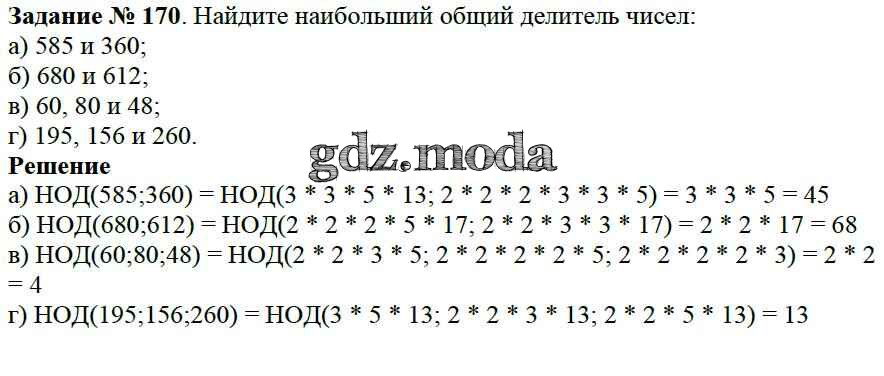 ОТВЕТ на задание № 170 Учебник по Математике 6 класс Виленкин